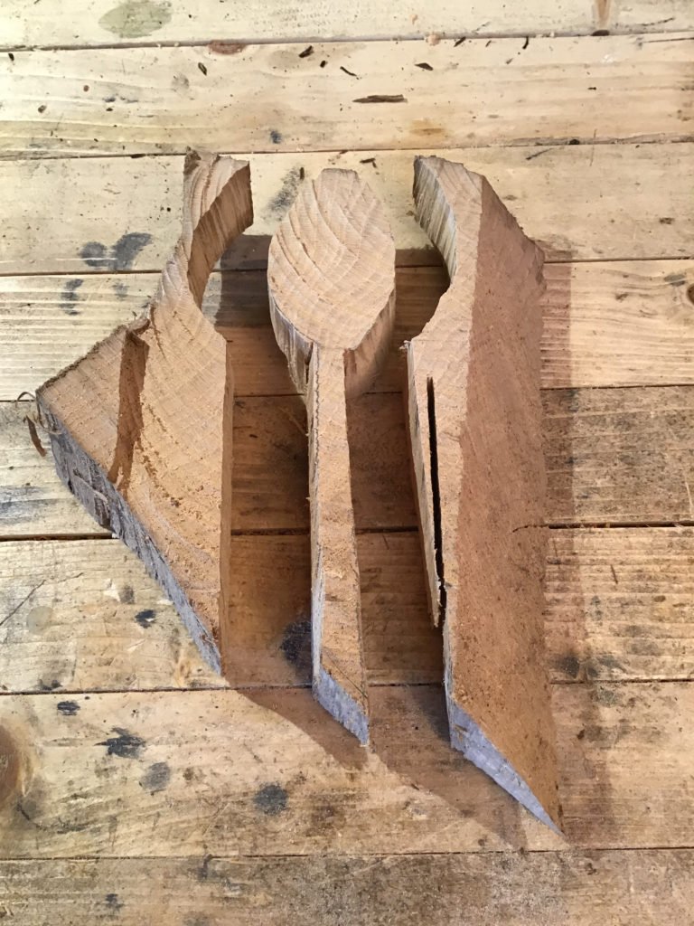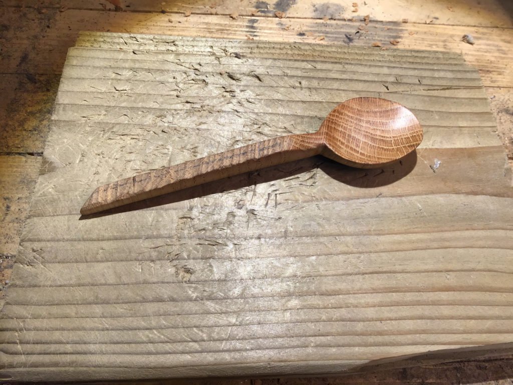 Pour ma part, je n’ai pas besoin d’infliger un petit défaut de cet ordre à mes objets en bois, une fois que je les ai terminés, car ils sont de toute manière imparfaits. A les regarder de près, on trouvera aisément là, une trace de couteau, ici, une différence d’épaisseur, ou encore, parfois, une petite fissure. Et à vrai dire, je trouve que c’est aussi ce qui fait leur charme, ou du moins leur identité, car, littéralement, je les fabrique « à la main ». J’ai bien essayé, l’année dernière, de fabriquer une cuillère la plus parfaite possible, la plus symétrique possible, avec un ponçage au poil. Eh bien, déception ! on aurait dit que cette cuillère avait été faite à la machine… Jusqu’où le travail manuel doit-il faire disparaître toute trace de la main qui fabrique?